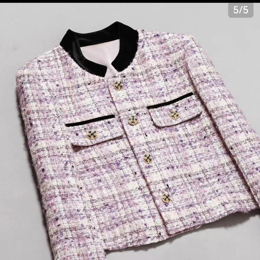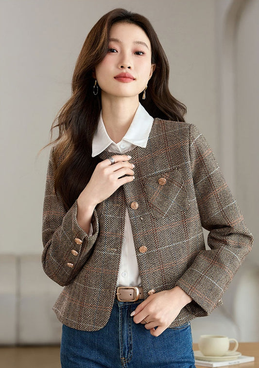Round Neck Cotton Tweed Women's Jacket