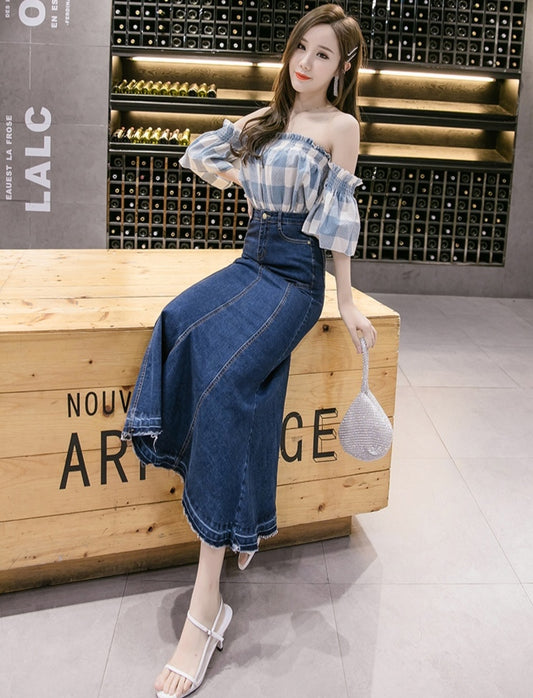 Blue Denim High Waist Mermaid Maxi Skirt