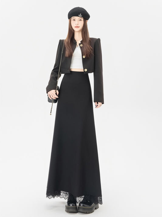 Lace Stitching Black Skirt