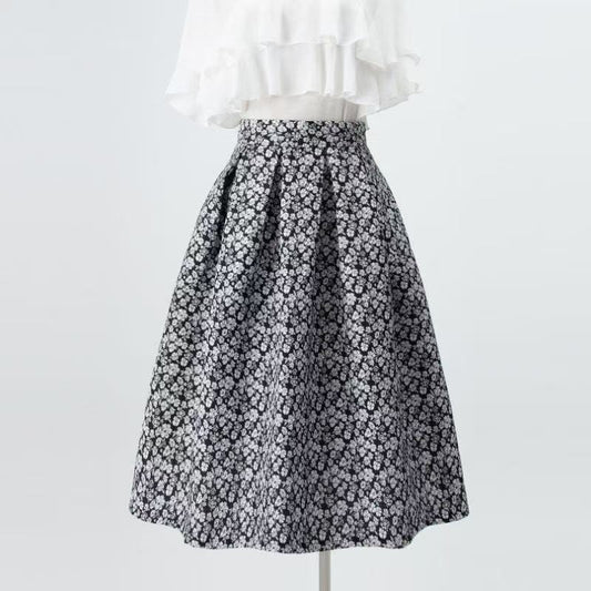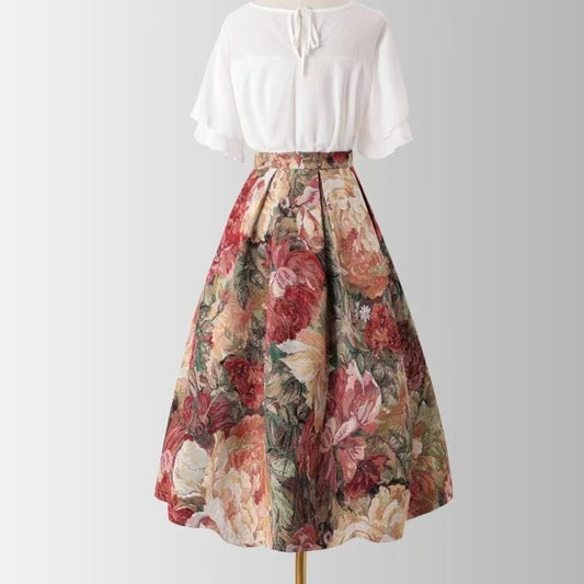 Floral Vintage-Inspired A-Line Midi Skirt