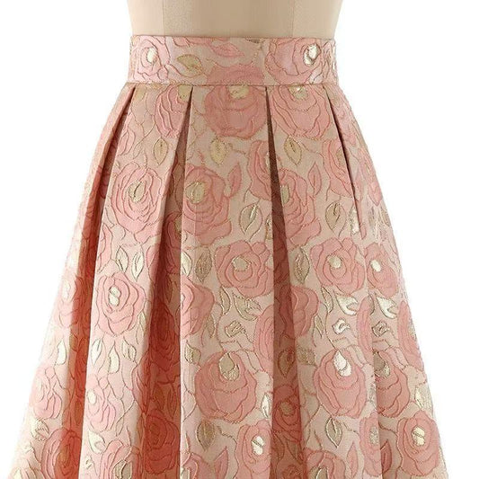 Pink Vintage-Inspired A-Line Midi Skirt