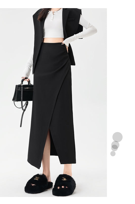 High Waist Irregular Pleated Slit Skirt