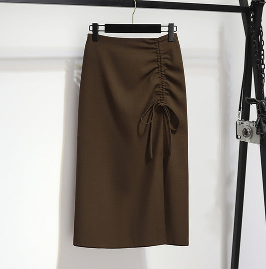 Slit Pleated Drawstring A-line Skirt