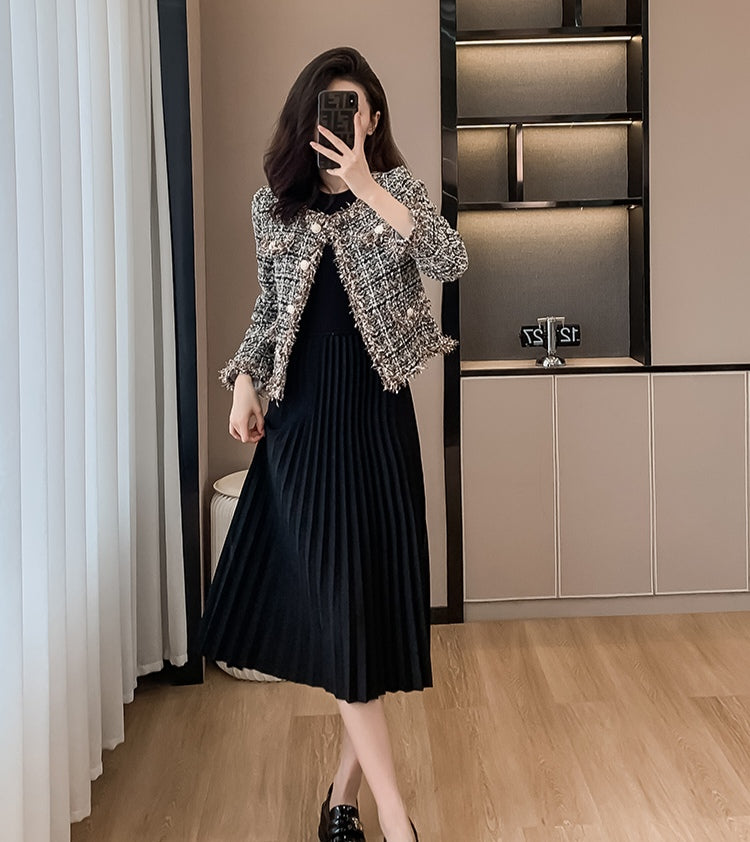 Chic Checkered Tweed Short Jacket - Ladies' Cropped Coat with Frayed Trim