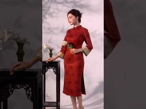 Modern Red Qipao Dress Long Sleeve Cheongsam